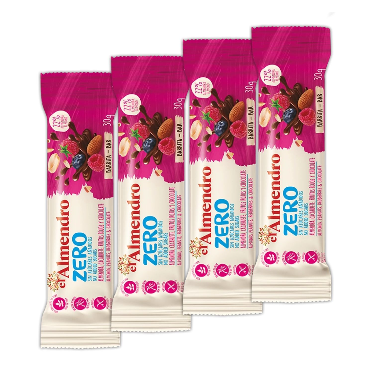 Baton ZERO z Orzeszkami Ziemnymi, Czekoladą i Czerwonymi Owocami, Bez Dodatku Cukru - (4x30g) 120g