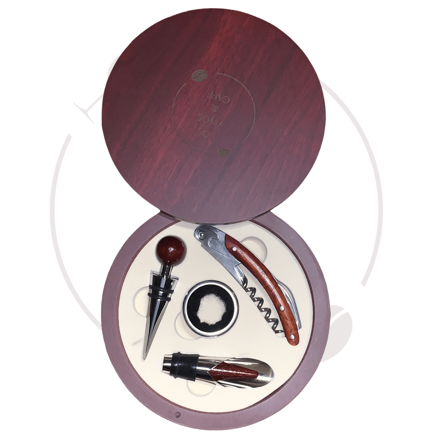 Na pudełku wygrawerowane jest firmowe logo Los Vinos & Cafe.