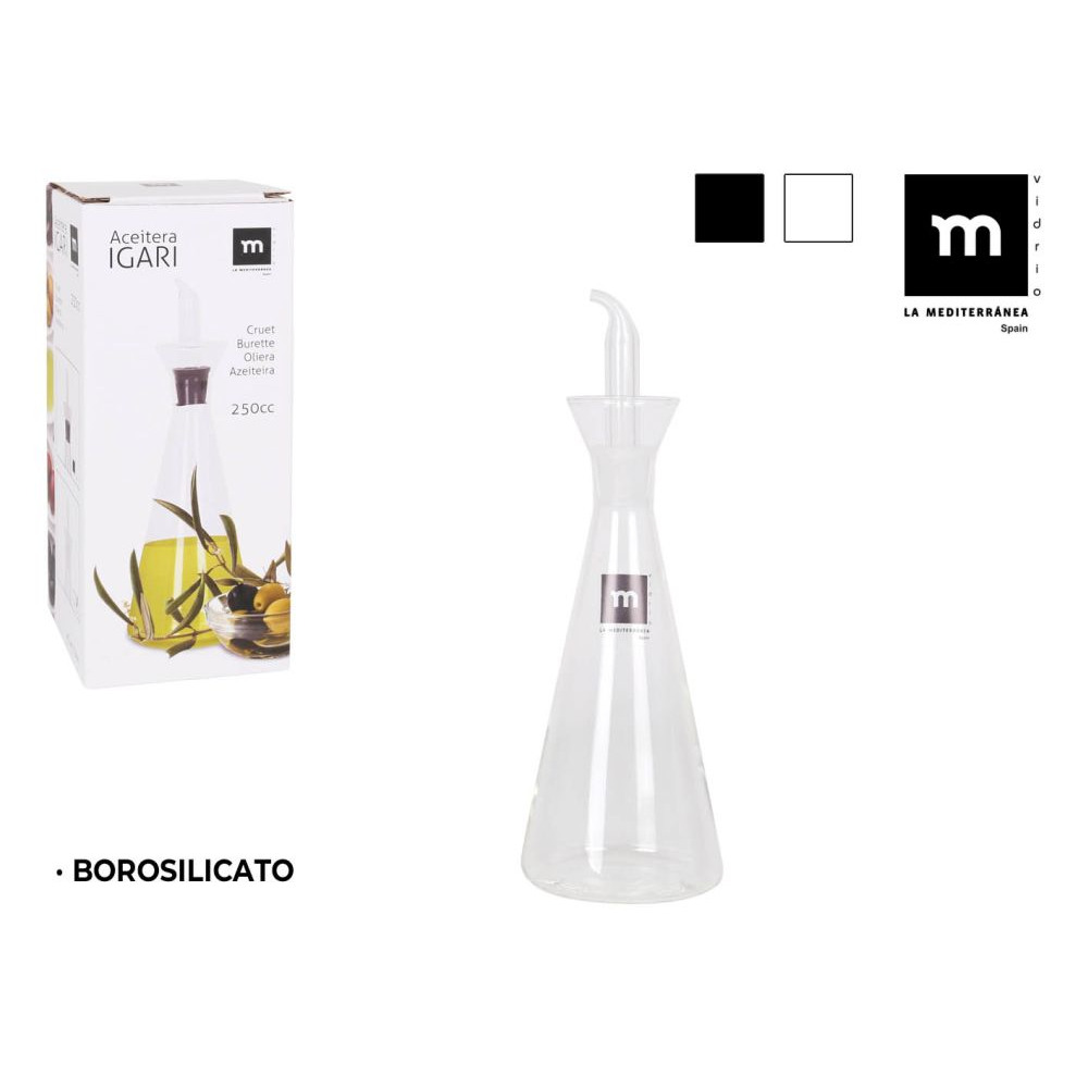 Praktyczna butelka na oliwę wykonana z wytrzymałego szkła boro-krzemianowego, które jest odporne na niskie i wysokie temperatury.
